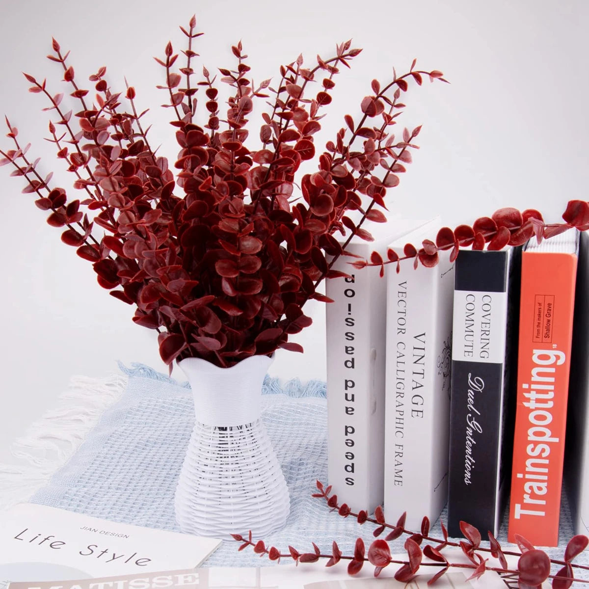 10/50pcs Artificial Plants Eucalyptus Leaves Fake Plants Vase Table Party Wedding Bridal Bouquet Home Decorations Outdoor Garden